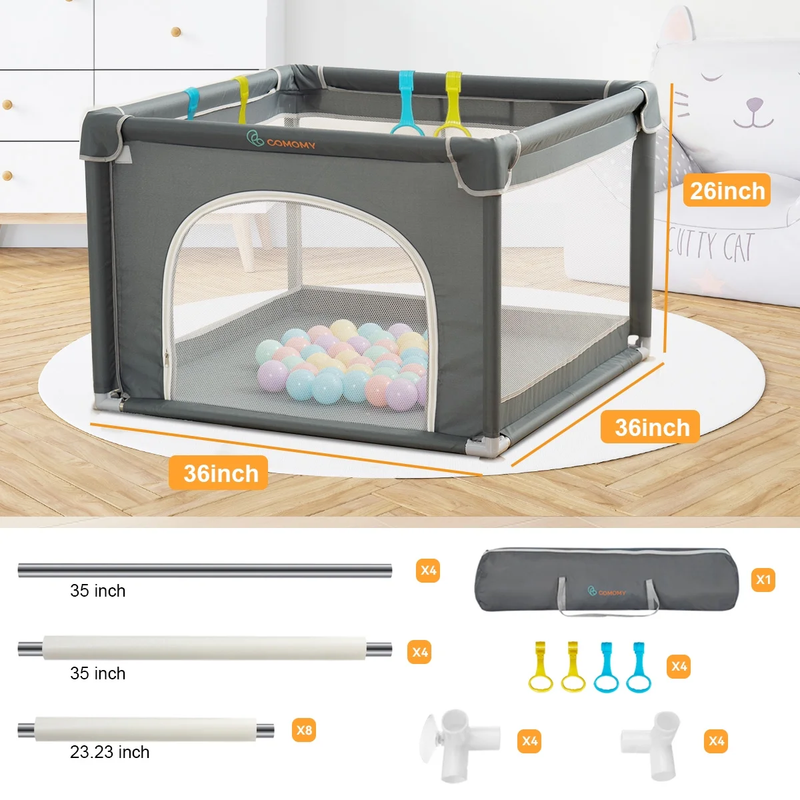 Baby Playpen, 36X36X27Inch Portable Soft Mesh Sturdy Pipe Ample Space , Gray