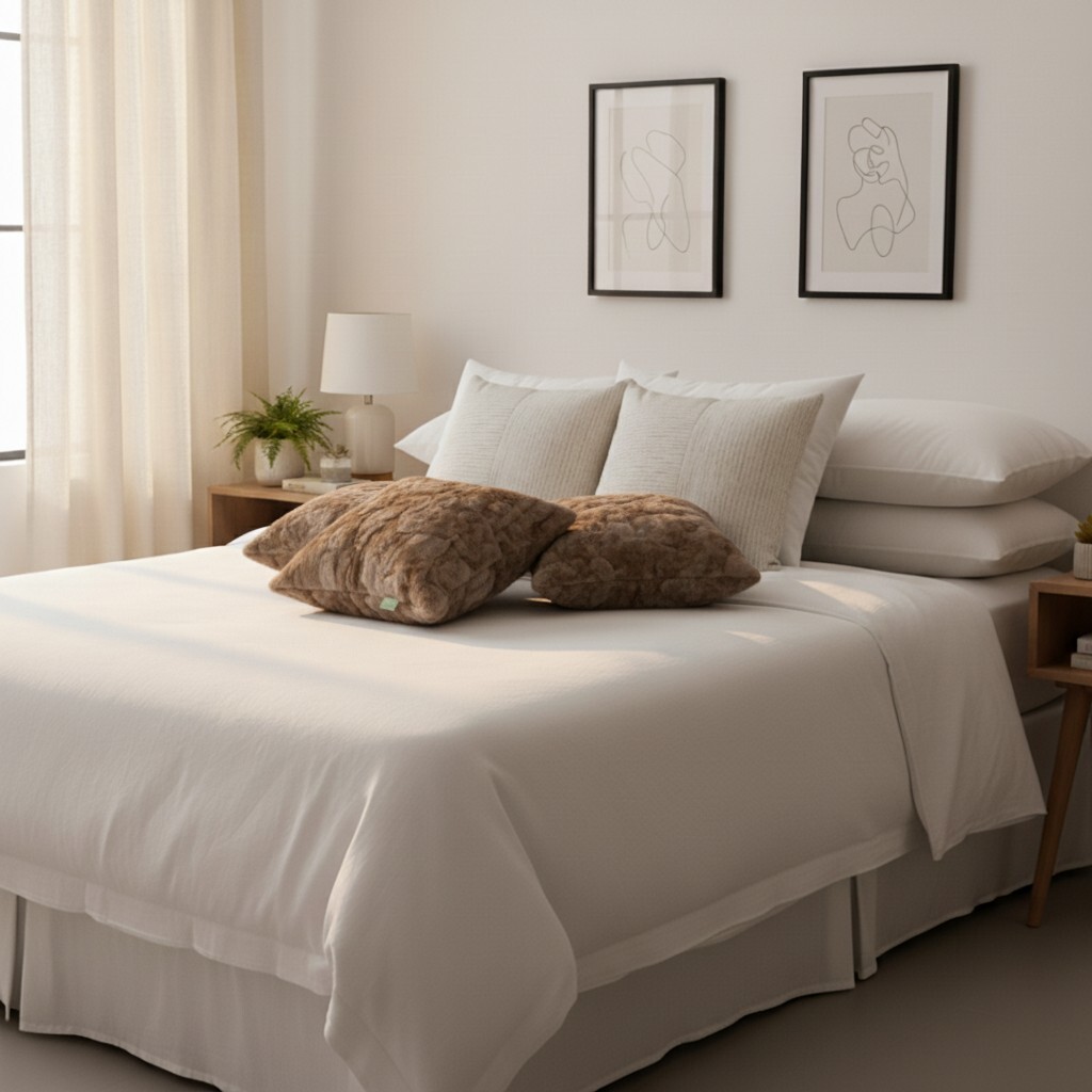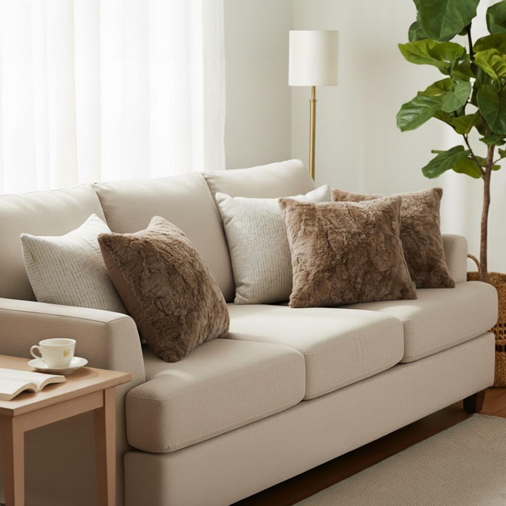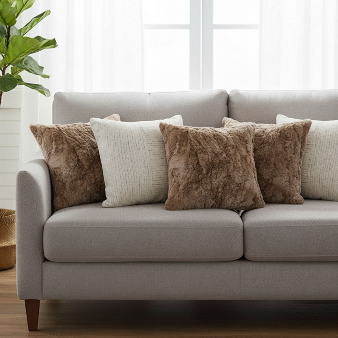 Textured Decorative Design: LuxeFur softness paired with floral linen patterns adds depth, comfort, and visual appeal.