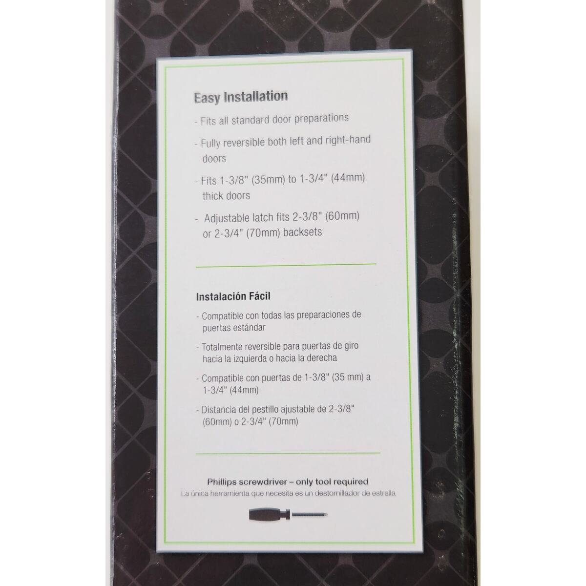 Latch has adjustable back set 2-3/8" to 2-3/4" to fit all standard door preparations