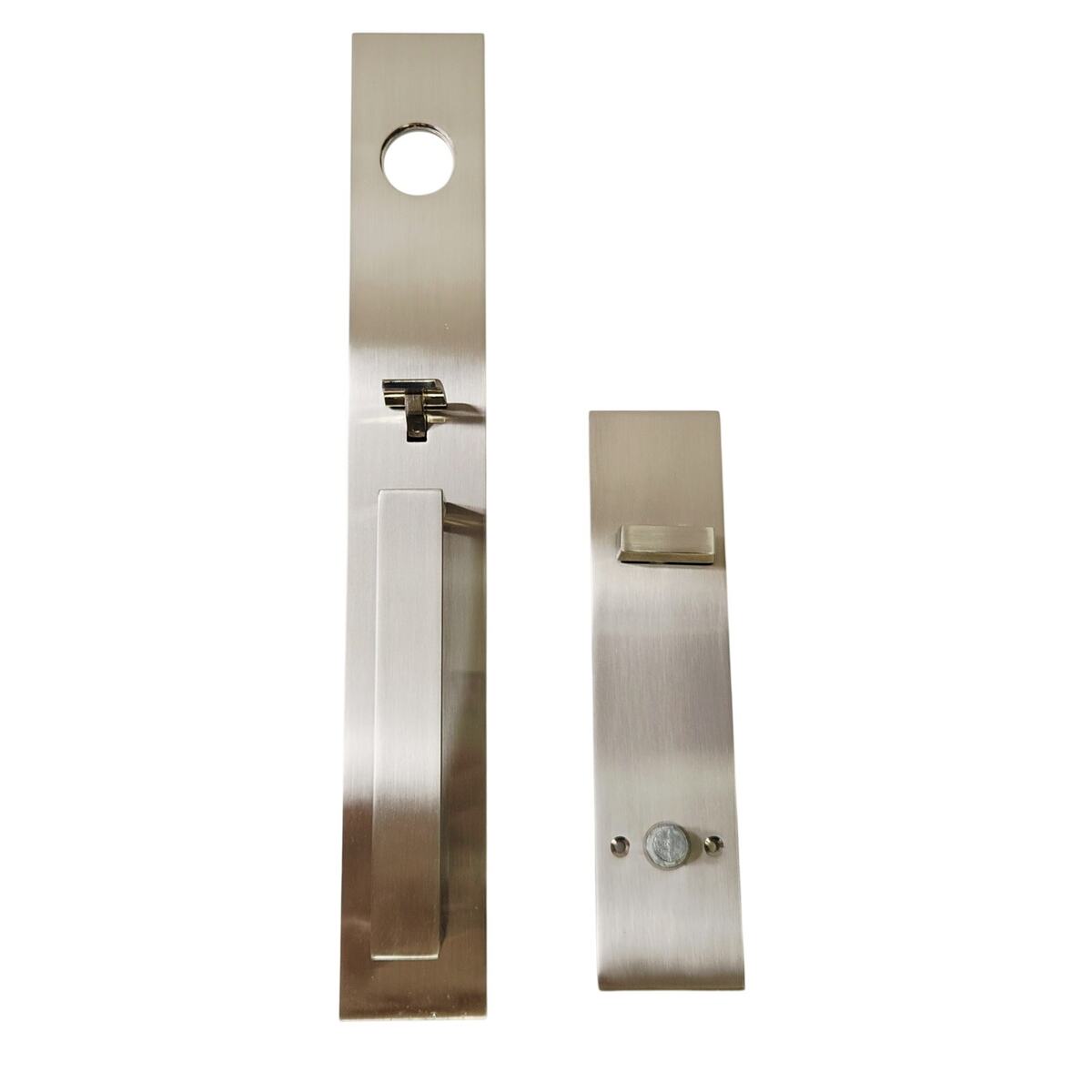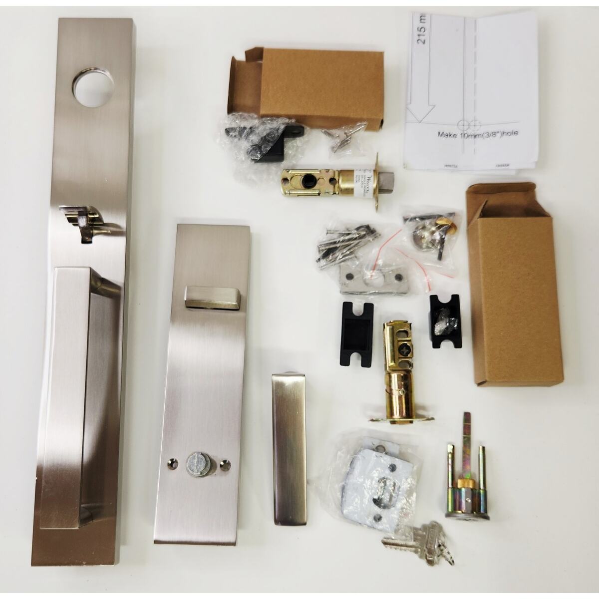 The Weslock Xanthis single-cylinder handle set has a low-profile contemporary design and a sleek look. The straight edges create a statement for the homeowner's door. With reliable function and modern design, the Xanthis Handle set will bring a lasting impression to any exterior door in your home. Transitional collection Xanthis entry handle with a single cylinder deadbolt that comes with an adjustable spring latch and adjustable deadbolt latch, round/ square faceplates round/ square strikes, round foot cap with screw, and assembly screws with wood screws. Interior Rectangle-shaped escutcheon with Single Cylinder Deadbolt with a lower Passage function and the spindle is attached to the plate, with a non-handed Utica lever. Easy to follow instructions.