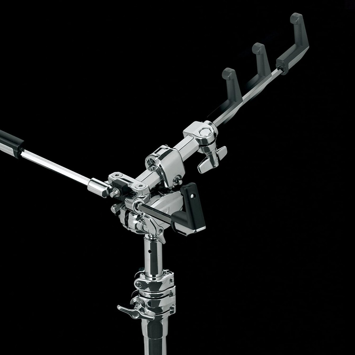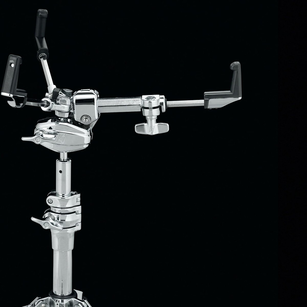 This snare stand enables quick and reliable setup through a new mechanism that adjusts the length of one of the three arms with a single T-nut, combined with angle adjustment of the playing surface via Omni-Ball. Furthermore, the newly designed arm claw brings out a more natural sound from the snare drum.