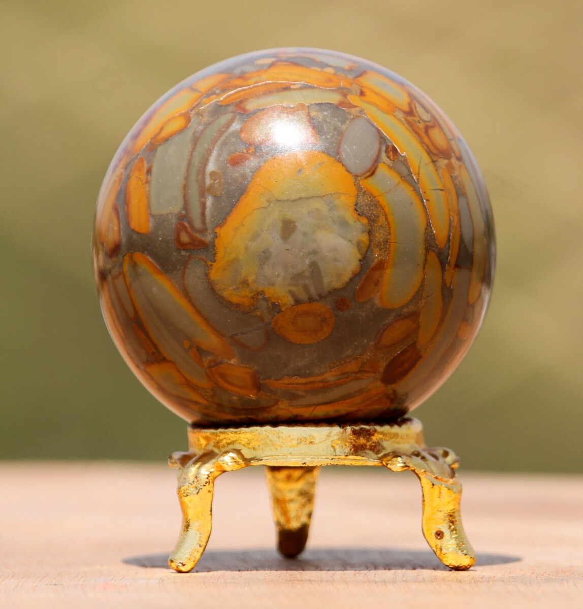 50mm/160g Superb Quality Carved Small Size Brown Bamboo Leaf Jasper Crystal Quartz Healing Gemstone Stone Sphere ball with stand.