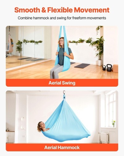 Featuring strong steel carabiners and chains, this silk aerial yoga swing supports 300 lbs/136.07kg and lets you glide through yoga movements. Wide layout accommodates all body types, while the thoughtfully designed frame enhances comfort, freedom, and a smooth, enjoyable practice experience.