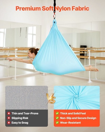 Tear-Resistant Fabric: Our aerial yoga hammock set is crafted from soft, elastic spandex that hugs your skin gently. Machine-washable and durable, it enhances balance and coordination while providing a calming space, letting you relax and enjoy quiet, stress-free moments