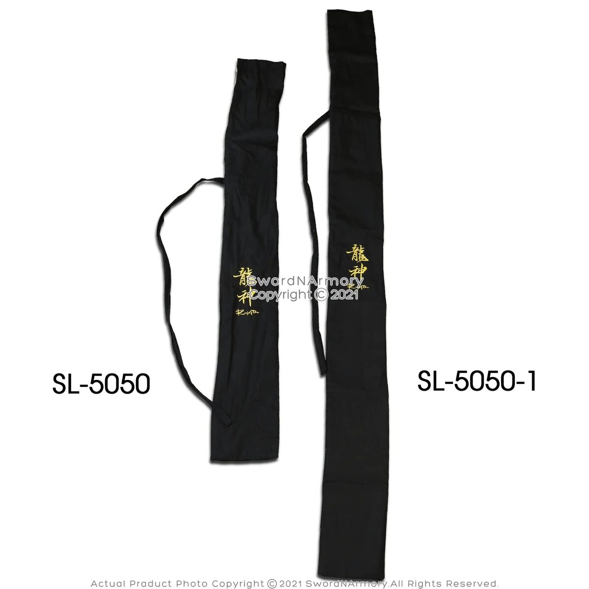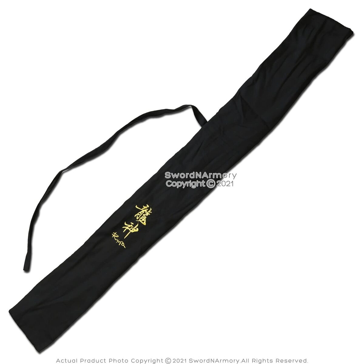 Perfect for collectors and martial artists alike, this cotton sword bag protects your treasured katana from the elements. The Ryujin brand speaks to this bag?s quality and design, and its golden logo accents the bag?s otherwise utilitarian black appearance. This bag fits any standard-sized katana. [Dimensions] 56?x 5? [Material] Made of sturdy cotton cloth [Size] Perfect for any katana at or around 40? [Protection] Guard your katana against the elements, as your katana guards you against your enemies [Quality] All of our products are made of the finest materials, and are packaged securely in our own warehouse