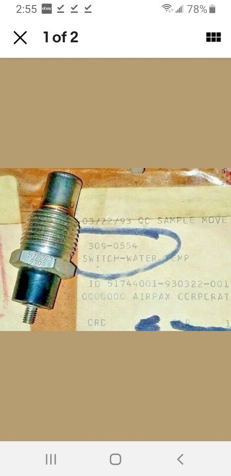 Cummins Onan 309-0554 0309-0672 Thermostat Switch Temperature Sending Unit NOS