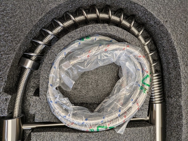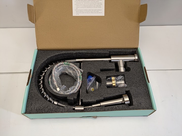 A commercial pull-down design with a high-arc open coil spout suit for most kitchen cabinets. The furious pull-down kitchen faucet has a 360-degree swivel sprayer that gives a wider water area and flexibility. The dual-function spray head switches between an aerated stream for filling pots and pitchers, and a powerful spray to rinse dishes and wash away stubborn food residue. Buy this item and you will enjoy using it in your kitchen