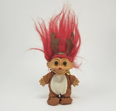 RUSS BERRIE 18449 VINTAGE CHRISTMAS REINDEER TROLL OUTFIT SMALL TOY RED HAIR