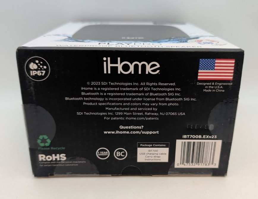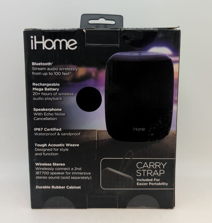 Item includes: Please note: This item includes 1x iHome Play Pro Portable Speaker, 1x USB Charging Cable, 1x Carry strap Only ? As Pictured. No other accessories are included.
