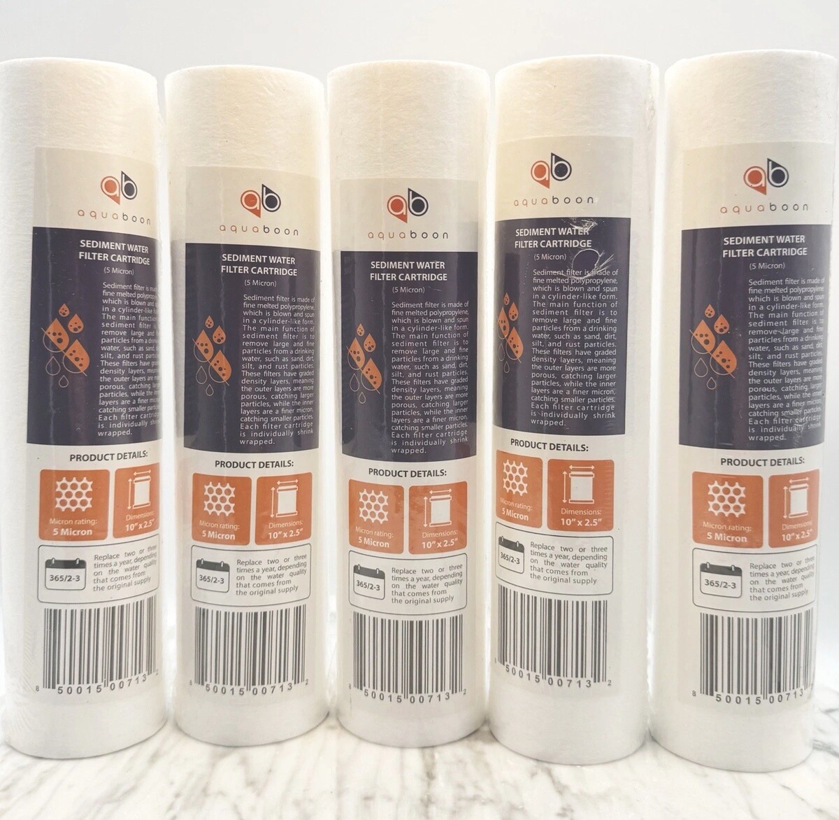Aquaboon Sediment Water Filter Cartridge Lot of 5 Micron Standard Size 10 x 2.5"