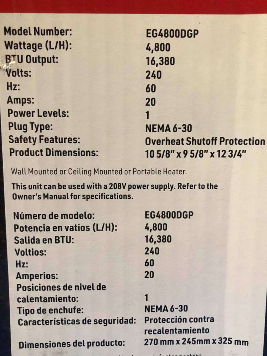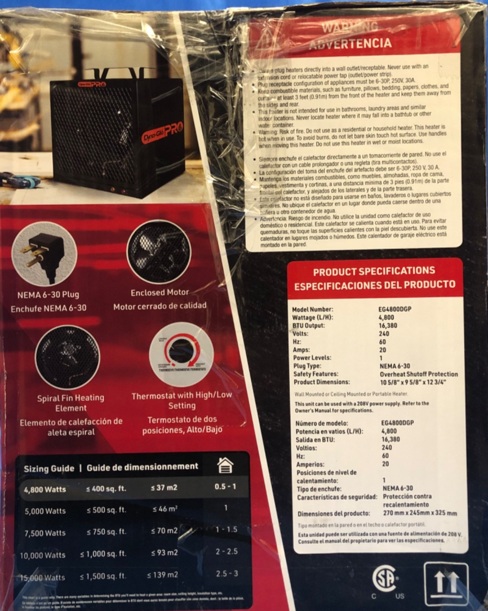 Dyna-Glo Pro 4800W Electric Garage Heater - 240V - Industrial Grade - Used