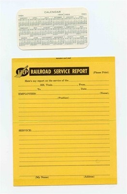 There are 4 items in this lot from the Federation for Railway Progress, The items include a Membership Card with a 1954 and partial 1955 calendar on the back. 2 unused Mailing Labels and a 4 panel fold out Railroad Service Report to be sent to the Passenger Relations Department of the Federation for Railway Progress. All in very fine condition
