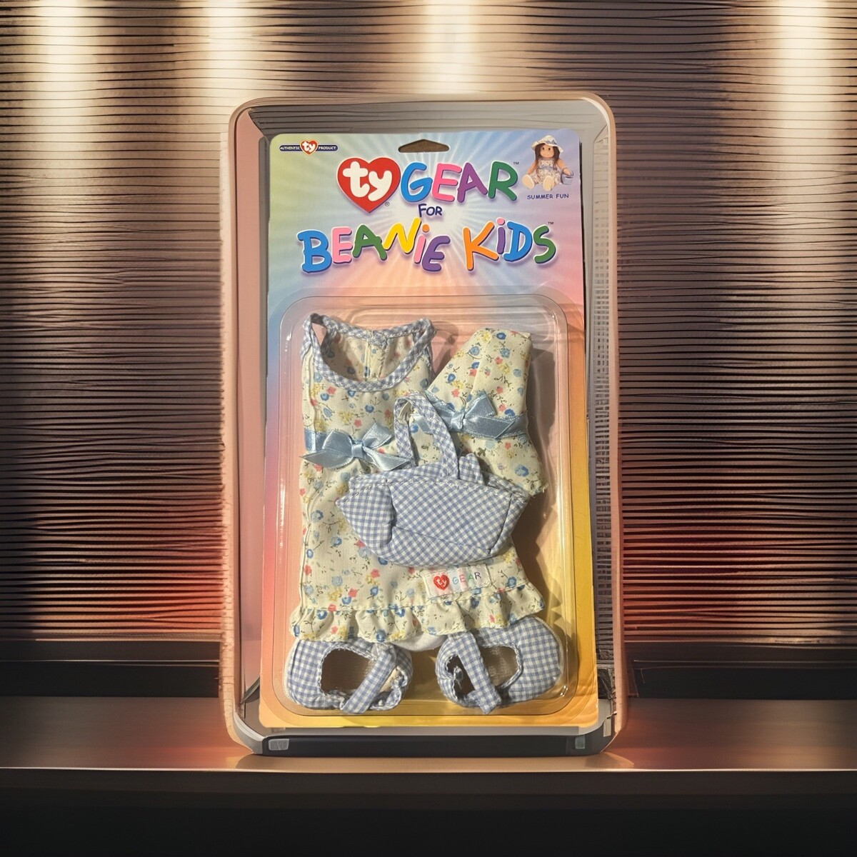 The TY Gear For Beanie Kids "SUMMER FUN" Outfit is a brand new in package accessory for Ty Beanie Kids plush toys. This outfit is perfect for dressing up your Beanie Kids in a fun and stylish summer-themed look, complete with a cute hat and clothes. It's a great addition to any Beanie Kids collection, allowing for endless creative play and imaginative storytelling.