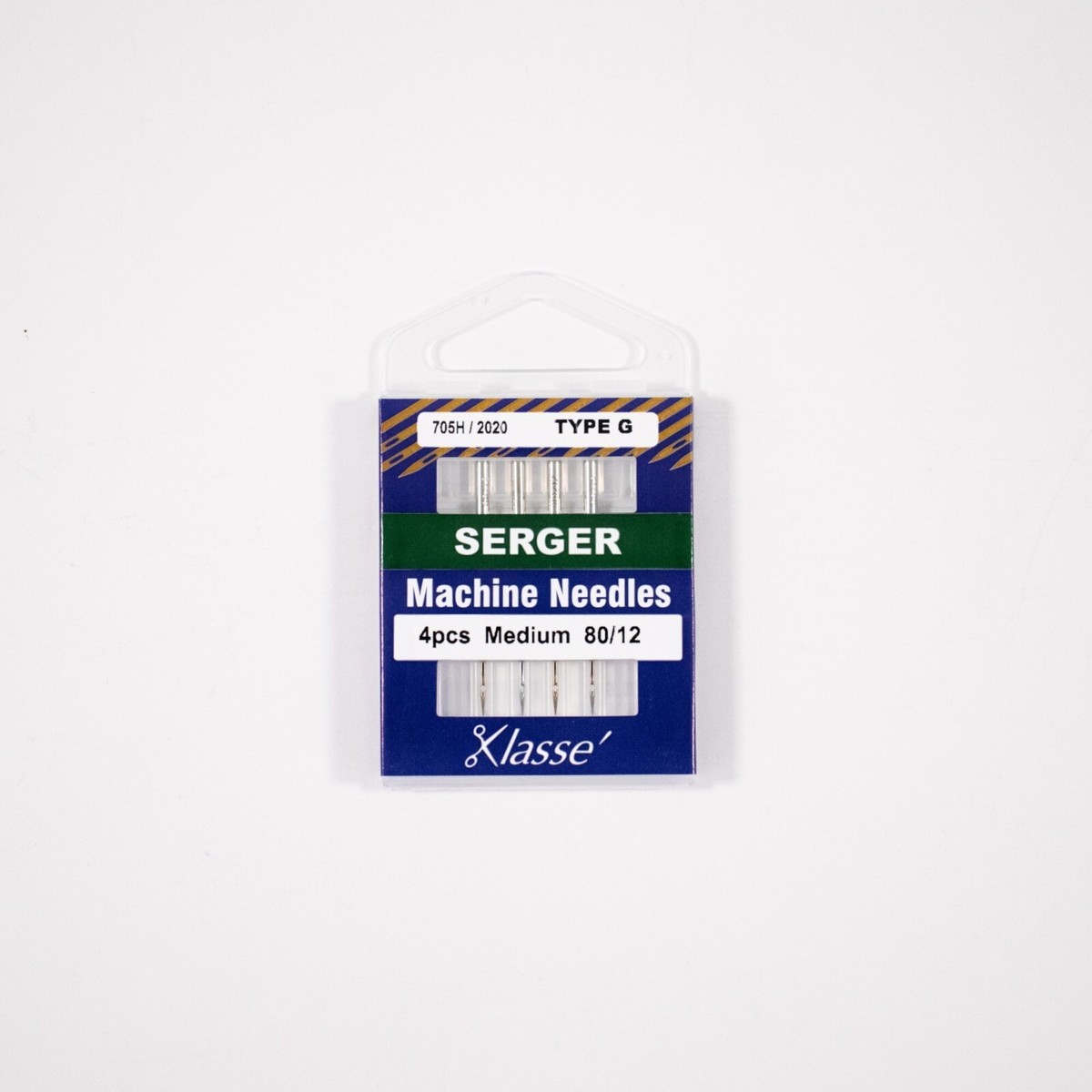 Klasse 170G 80/12 Type G Serger Machine Needles. German-Engineered Type G Steel Machine Needles. Unlike sewing machines, sergers use different needle types dependent on the serger make and model. The sharp point penetrates all kinds of fabrics. Check your sergers instruction manual to find correct needle type. Four Type G Serger Needles in Package. CHK-AA5170G