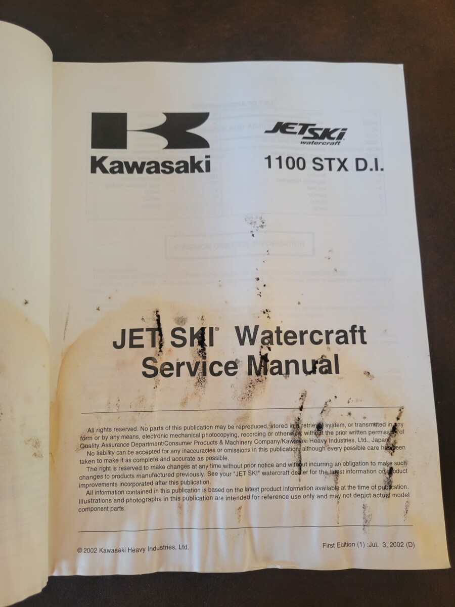 2003 Kawasaki 1100 STX D.I. Jet Ski Watercraft Service Manual 99924-1307-01