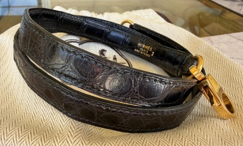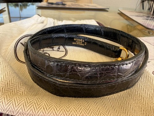 Excellent Hermes Black Alligator 90cm Handbag Replacement Shoulder Strap