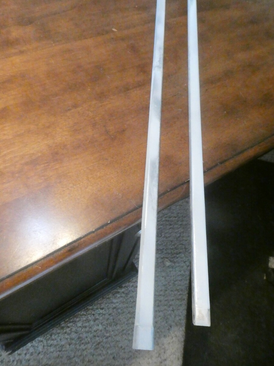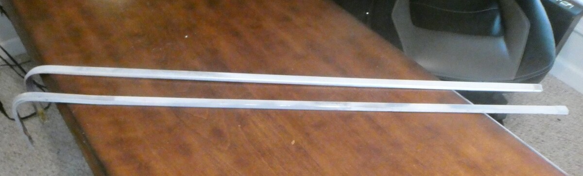 This is the molding that sets below the rear cab window and wraps around the side. Has a few small dents as shown in pictures. length is 37 1/2 inches or 41 3/4 inches following the curve. 3/4 inch wide.