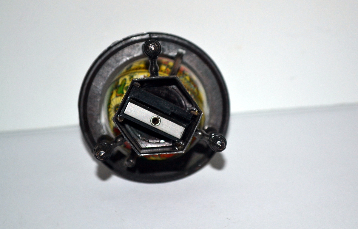This listing is for one very unique mini world desktop globe. The globe itself turns and has the continents in various colors. It also has a pencil sharpener in the base.