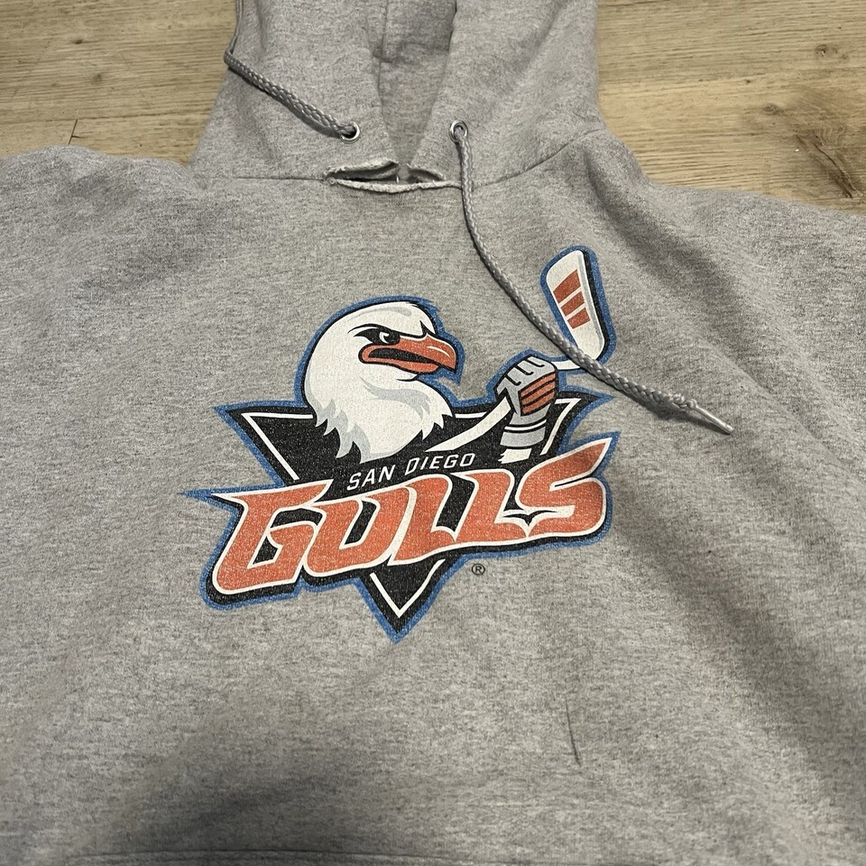 San Diego Gulls Vtg Gray Pullover Hanes Hoodie Size Large AHL Hockey Anaheim