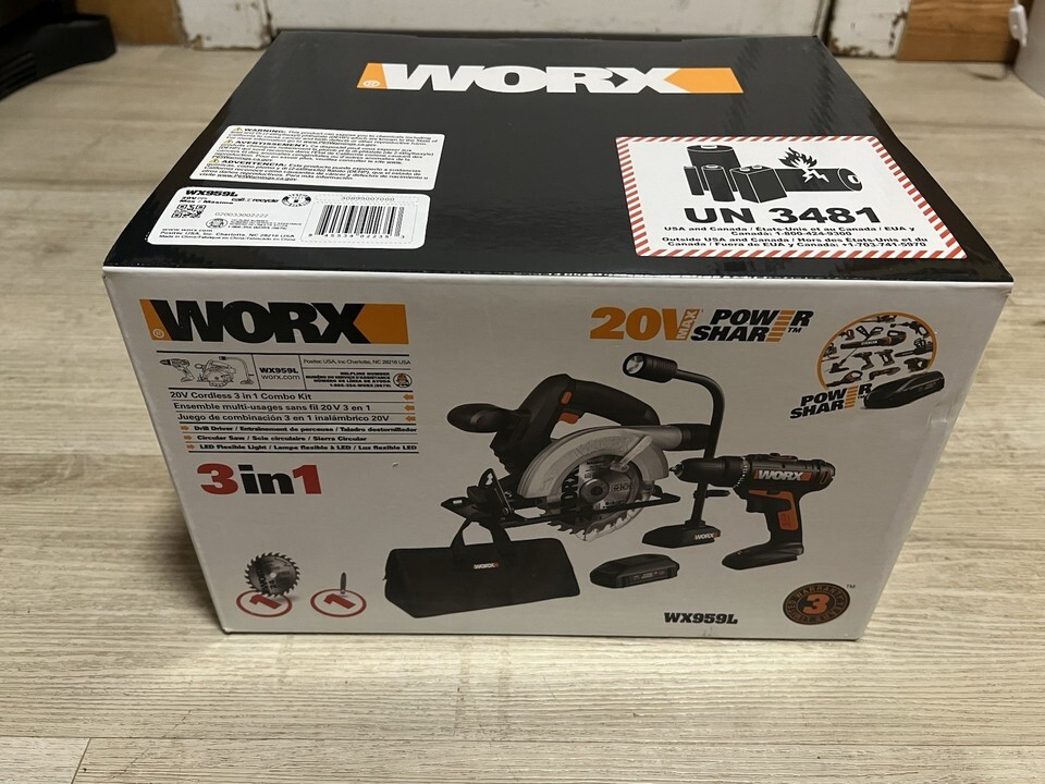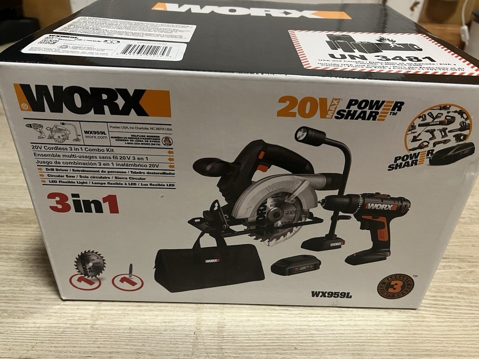 Worx 20V Combo Kit with Drill, Circular Saw and Flex Light, Model# WX959L