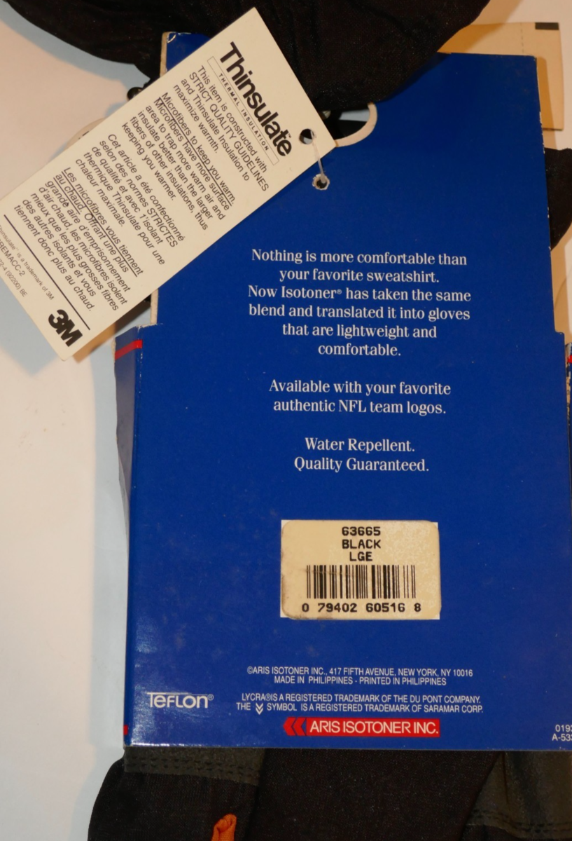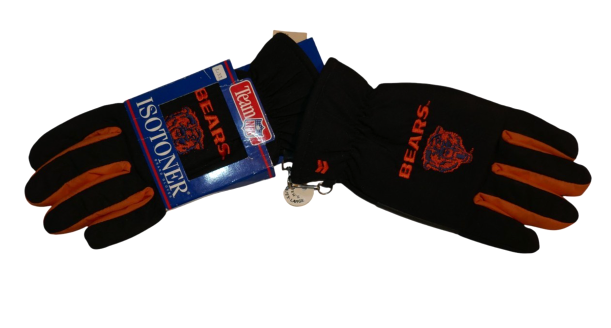 The Isotoner NFL Chicago Bears Thinsulate Gloves are officially licensed by the National Football League (NFL) and feature the team's iconic colors and logo. Ideal for football enthusiasts looking to represent their favorite team in style. The cardboard packaging has some wear.
