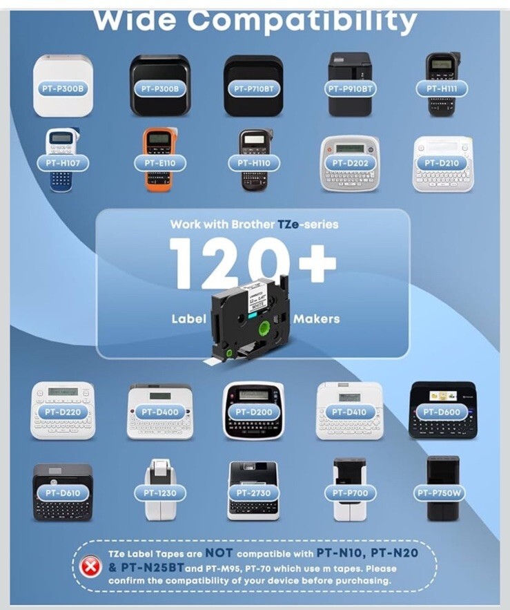 For Brother P-Touch Laminated White 12mm x 0.47". 1/2"