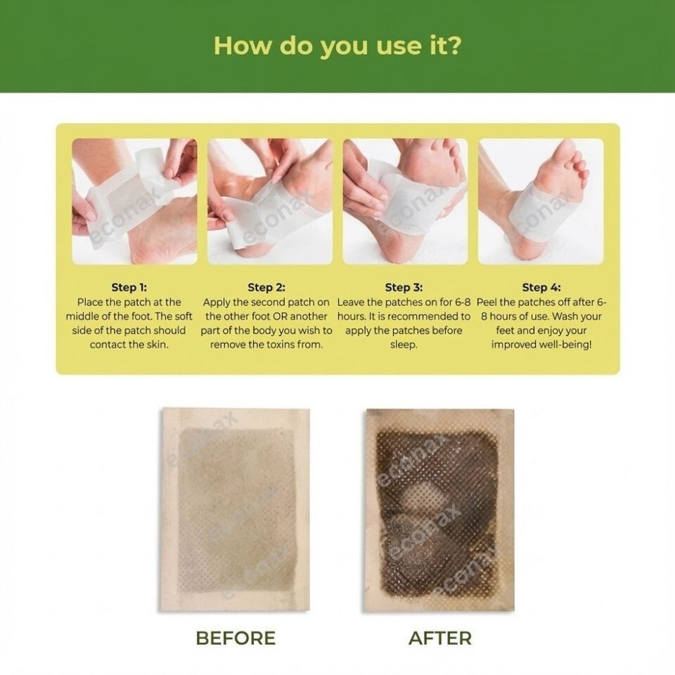 Apply one patch to the sole of each foot before bedtime. Remove the patches in the morning and clean the feet with warm water.