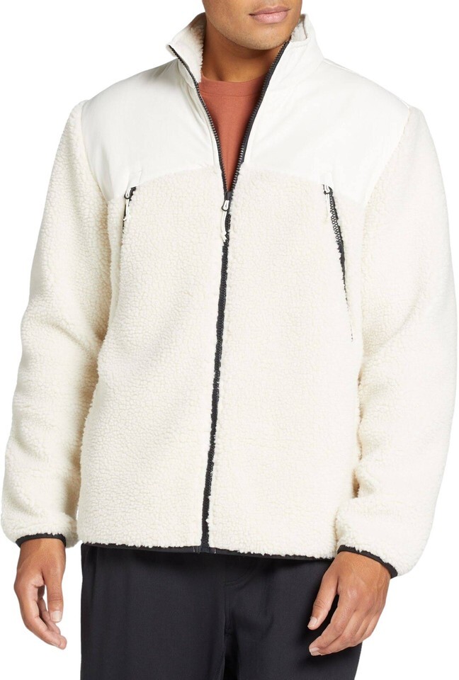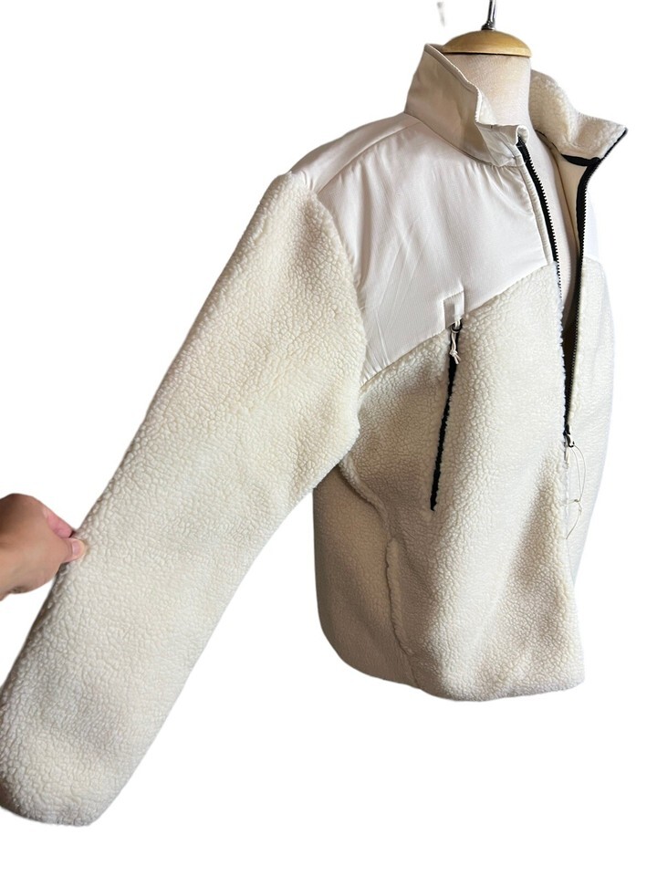 Stay cozy and stylish with this NWOT Alpine Design Sherpa jacket, perfect for any outdoor activity. The white and black color combination adds a modern touch to the the full zip style and pockets provide both functionality and convenience. Made of polyester, this jacket is machine washable and easy to care for.