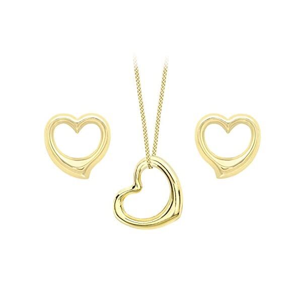 Product Name: Carissima Gold 9 ct Yellow Gold with Open Heart Earrings and Pendant on Curb Chain Necklace of Length 46 cm/18 inch