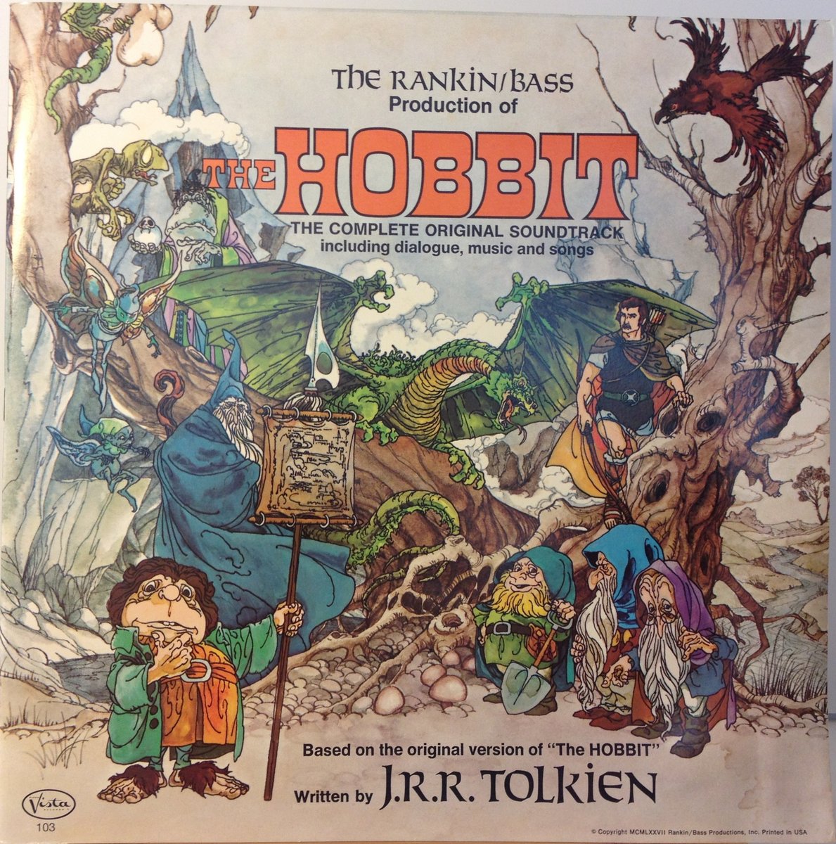 Product description: The complete original sound-track on two records including a 16 page book of full-color illustrations from the animated motion picture. Based on the Original Version of "The Hobbit" By J.R.R. Tolkien. Starring in alphabetical order: Orson Bean, Richard Boone, Hans Conried, John Huston, Otto Preminger, Cyril Ritchard, and Theodore. With the talents of Paul Frees and Jack De Leon, Don Messick, and John Stephenson. "The Great Adventure," The Ballad of the Hobbit sung by Glenn Yarbrough. Music composed, arranged and conducted by Maury Laws. Lyrics written and adapted by Jules Bass. Production designed by Arthur Rankin, JR. Adapted for the screen by Romeo Muller. Produced and directed by Arthur Rankin, JR. and Jules Bass.