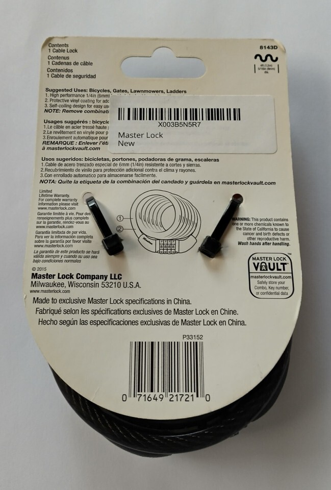 Master Lock 8143D Combination Cable Lock 6ft Bike Gate Ladder Security New