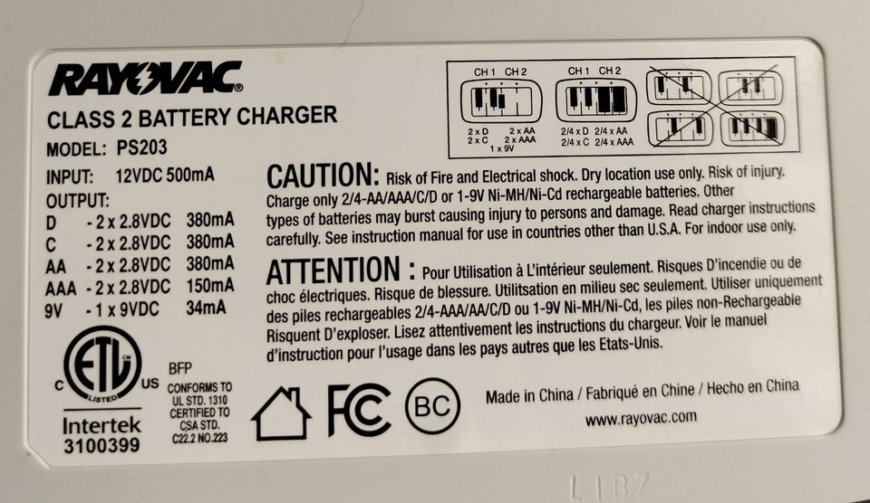 Rayovac PS203 Universal Rechargeable Battery Charger For Parts or Repair