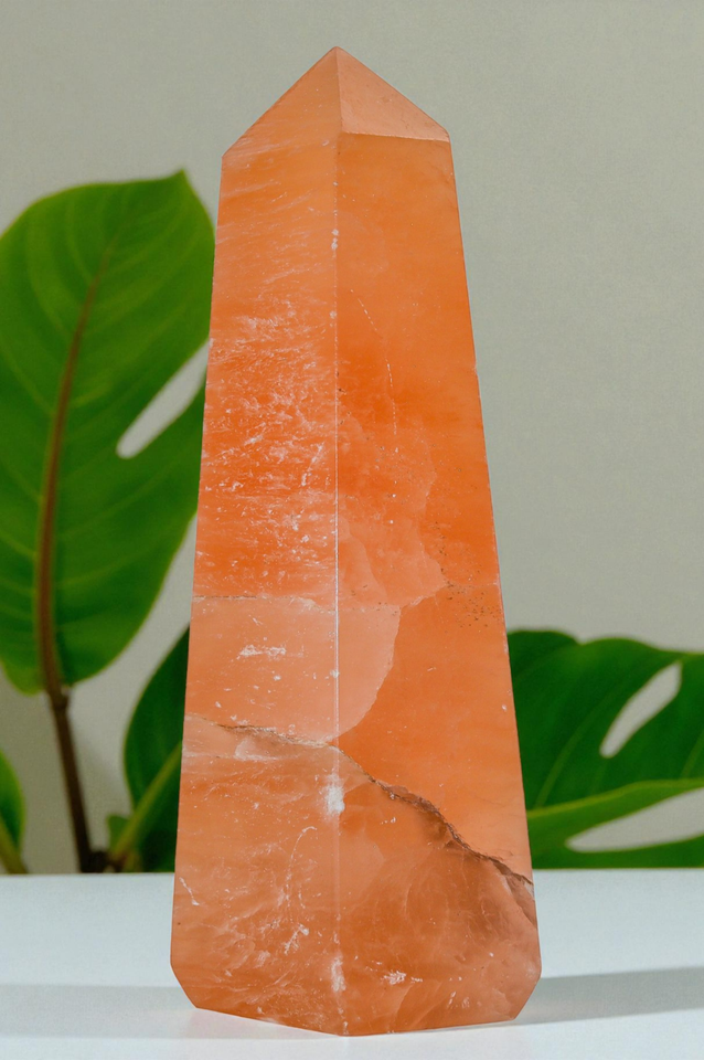 Orange selenite obelisk wands are natural crystal tools used in spiritual and energy work, highly valued for their combined properties of purification, emotional balance, and spiritual grounding.