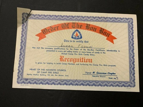 Camp Fire Girl Annual Charter Certificate and similar items