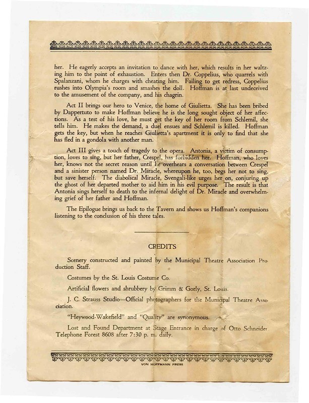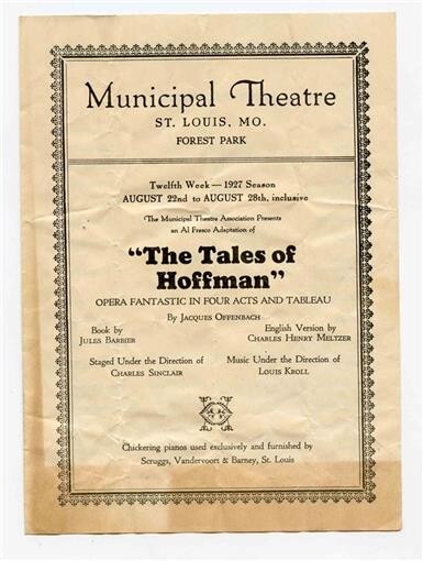 1927 St Louis Municipal Theatre Program The Tales of Hoffman