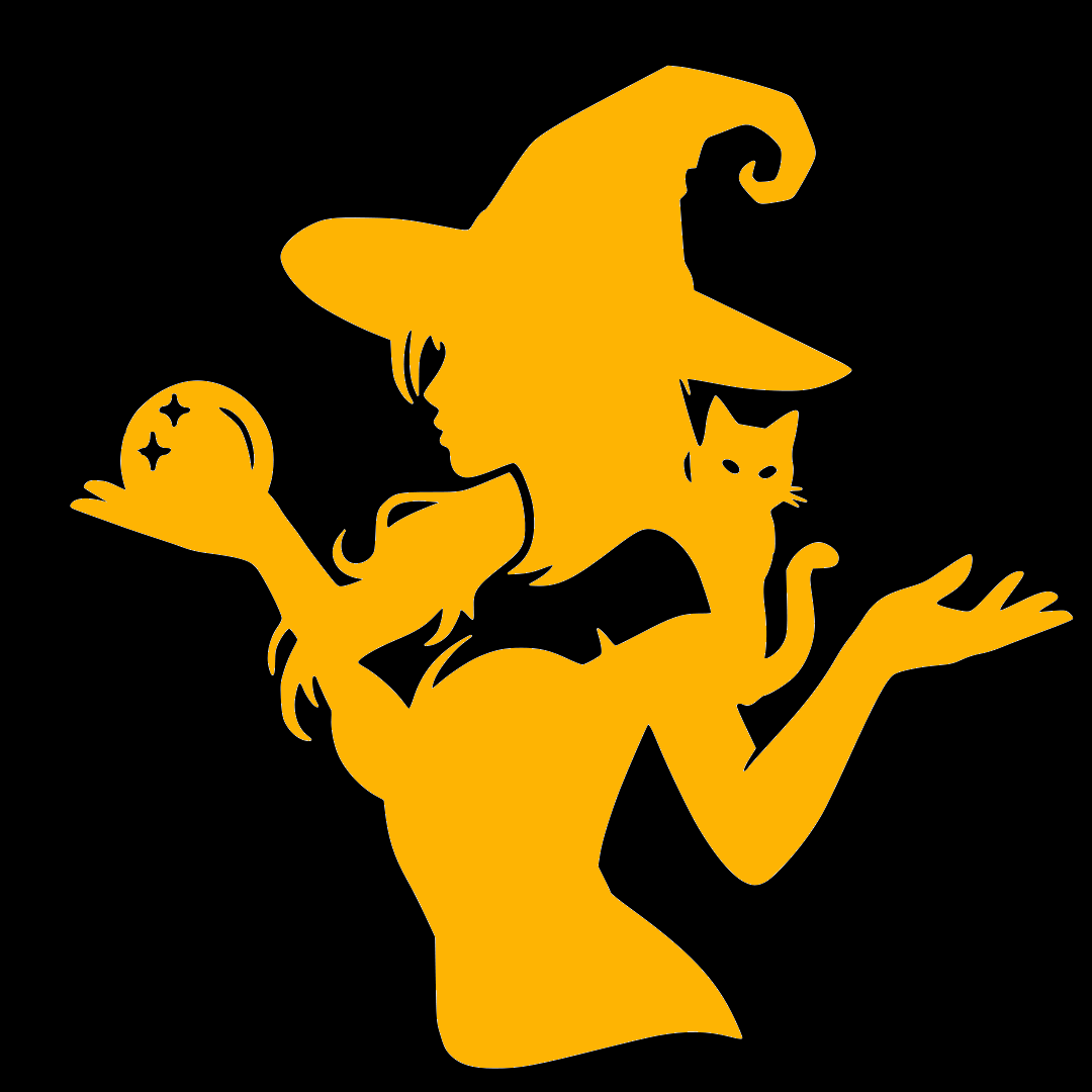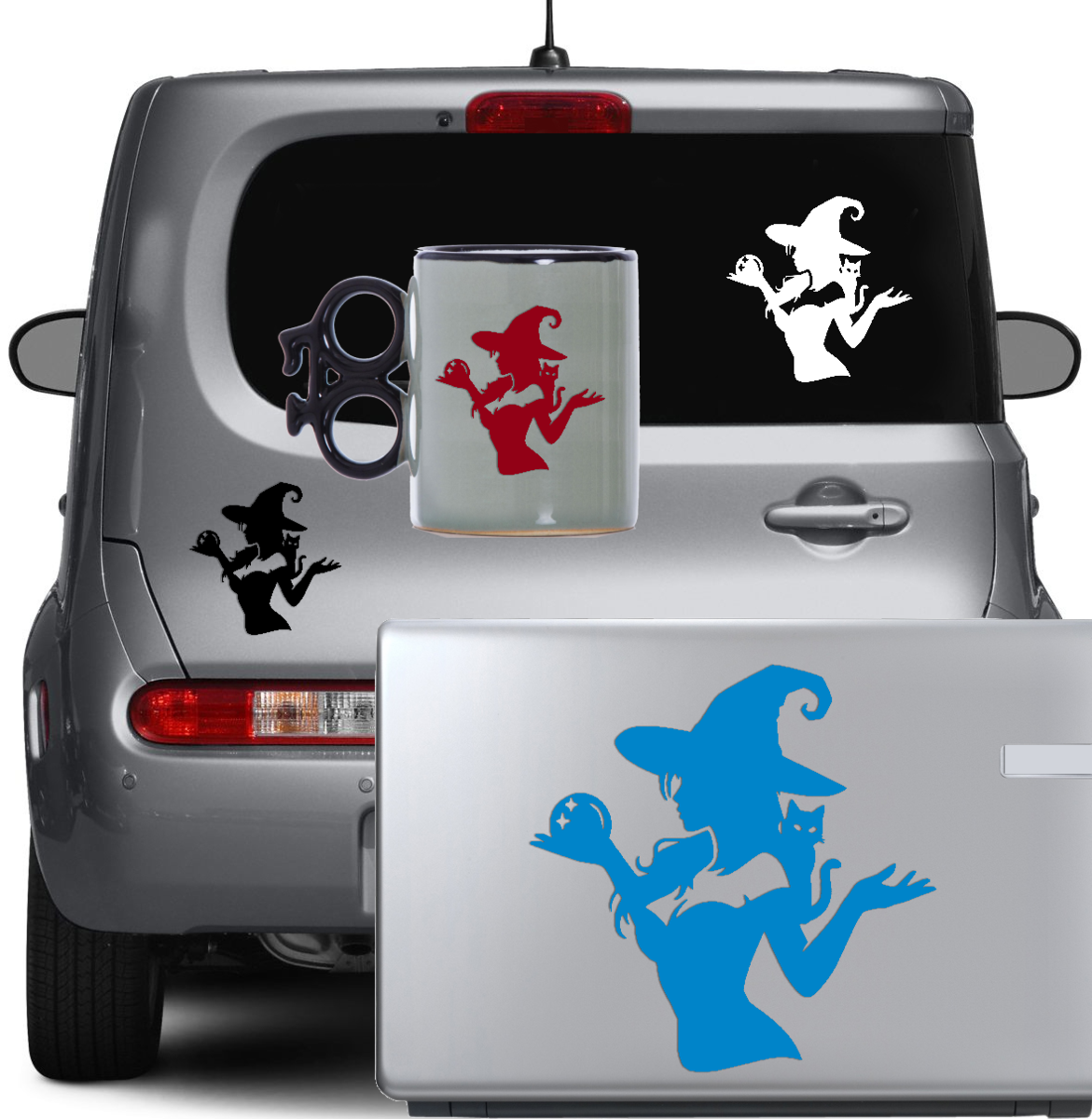 Cute Witch Vinyl Decal Sticker – Cat on Shoulder & Magic Ball for Car Bike Phone