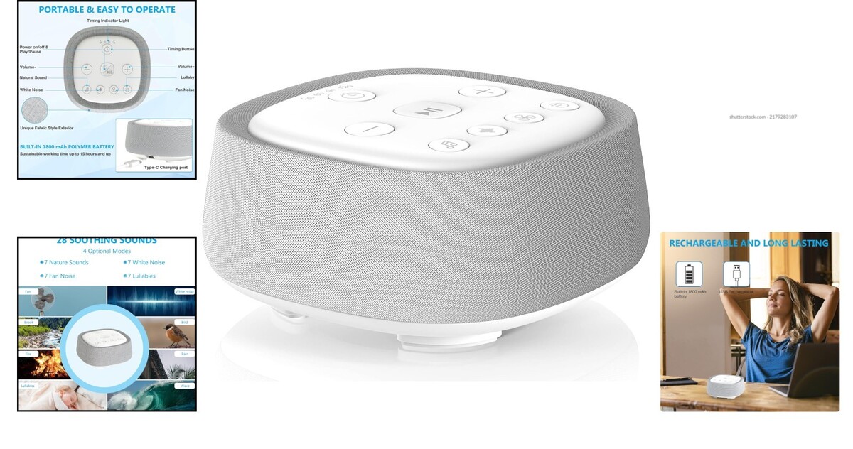 Portable Rechargeable White Noise Machine - 28 Soothing Sounds for Better Sleep
