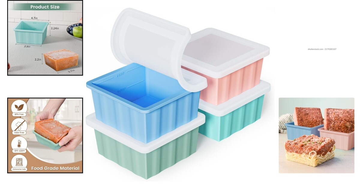 4-Pack Silicone Freezer Tray Set with Lids for Easy Meal Prep - 2-Cup Capacity