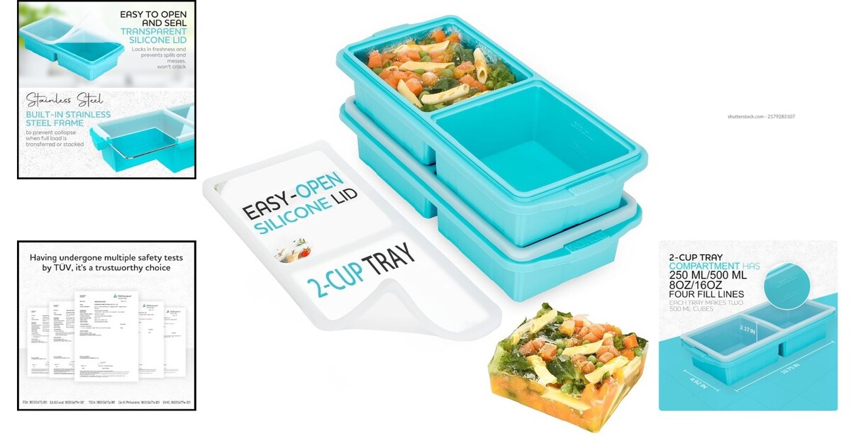Silicone Freezer Tray with Lid – 2-Cup Portion Ice Cube Mold for Soups & Stews