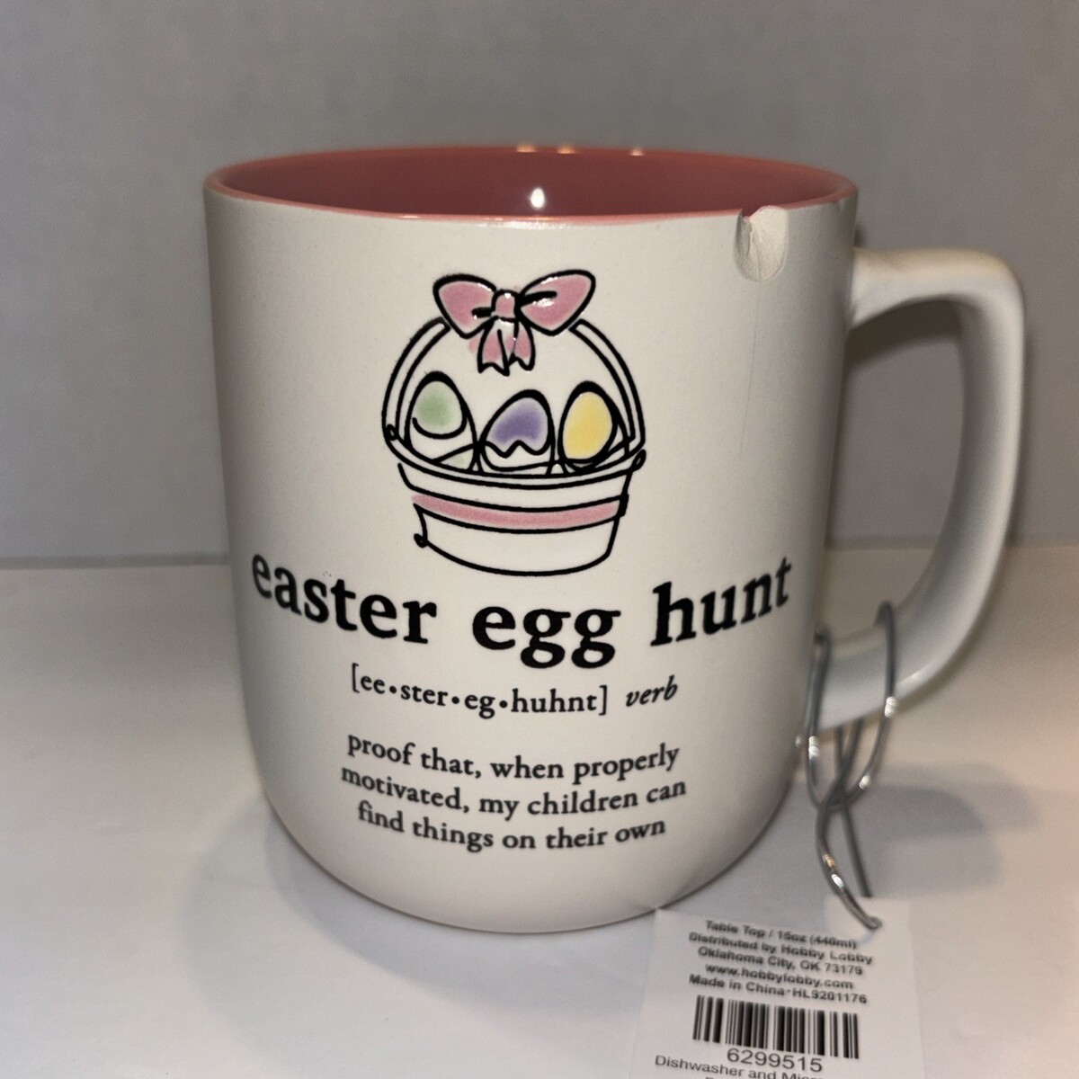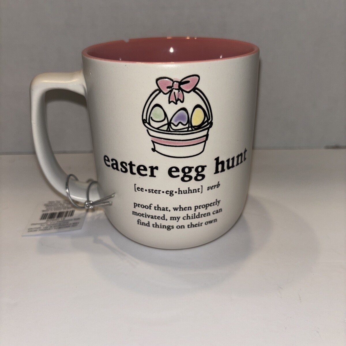 Funny White/Pink Easter Themed Mug For Parents (CHIPPED)—SHIPS IN 24 HOURS