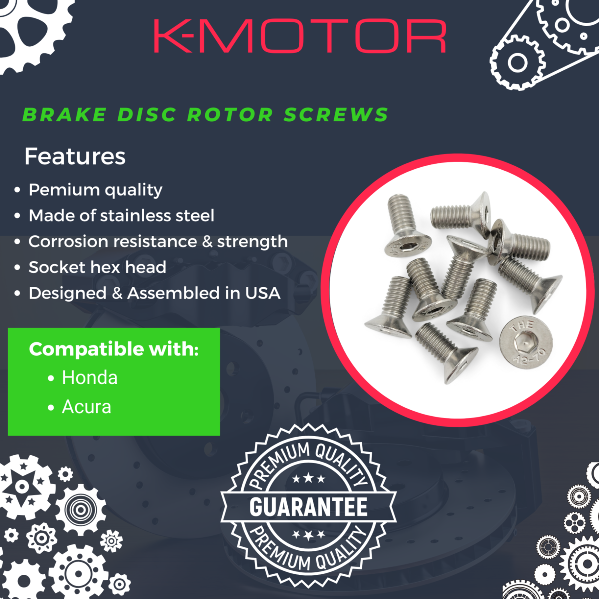 Brake Disc Rotor Screws Compatible with Honda Acura - 10 Pack