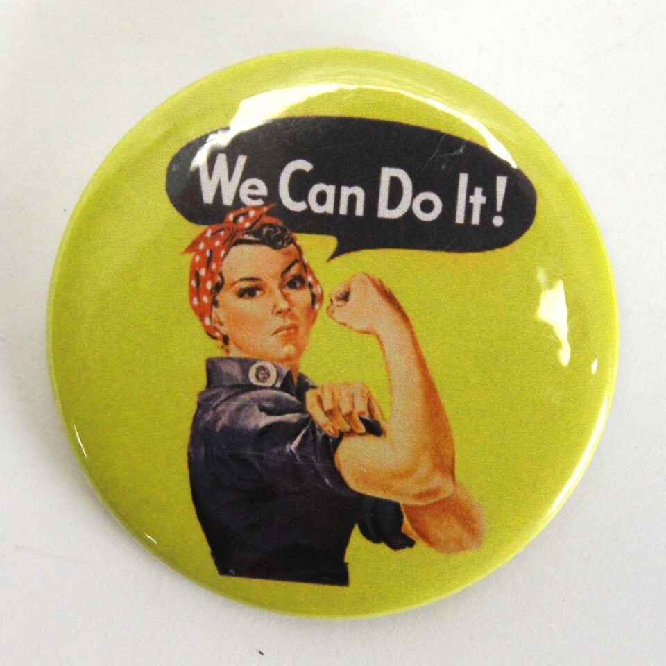 Rosie Riveter We Can Do It! Pin Button 2" Diameter Women Empowerment