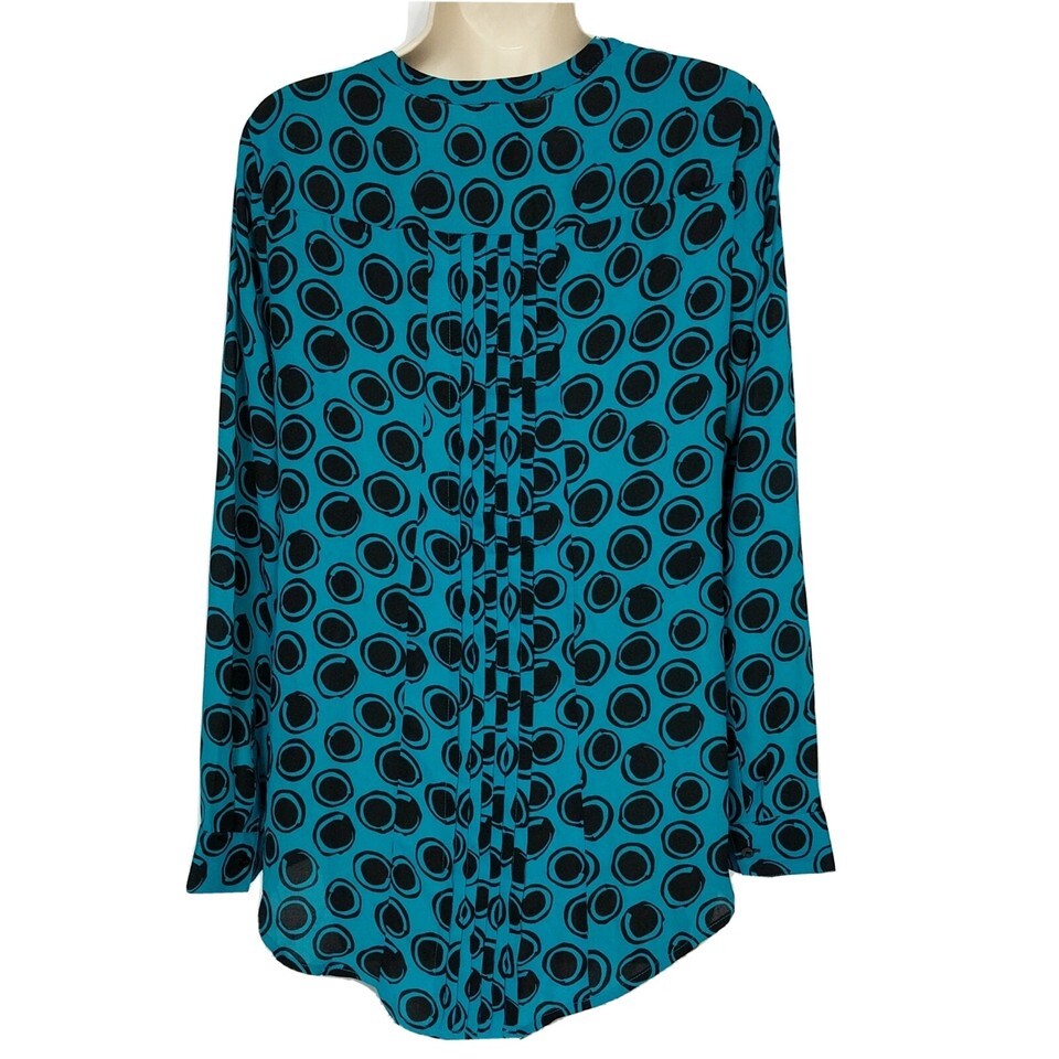 NWT Worthington Button Up Blouse Top Sm Geometric Black Blue Fringe Shoulder