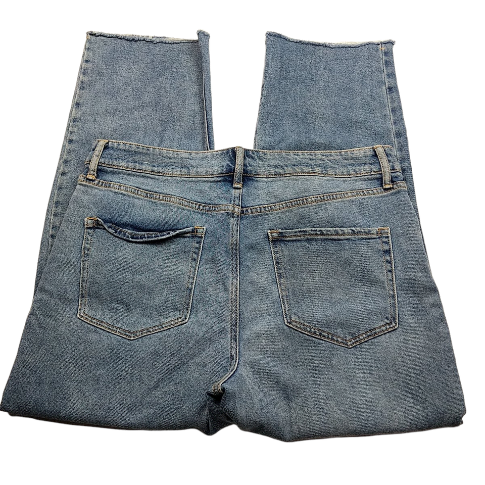 Wild Fable High Rise Straight Ankle Jeans 14 Medium Wash Button Fly Distressed