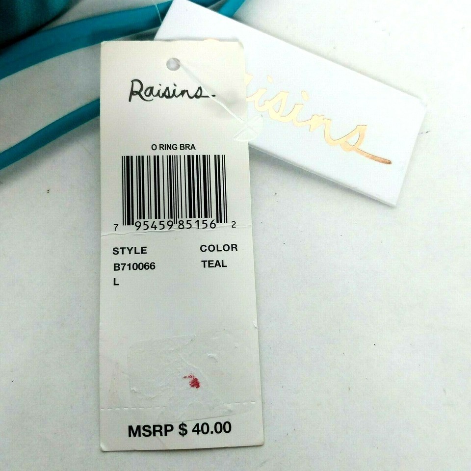 NWT Raisins O Ring Bikini Top Swimsuit Lg Solid Teal Padded B710066