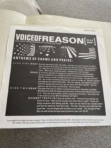 Voice Of Reason- Gear 7” Vinyl EP Black and 50 similar items