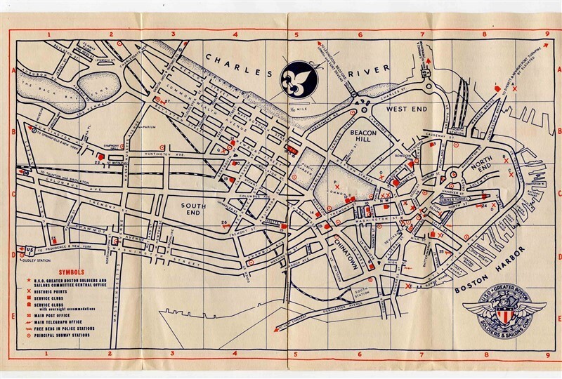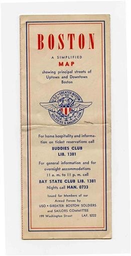 Greater Boston Massachusetts USO Map March 1943 Soldiers and Sailors Committee