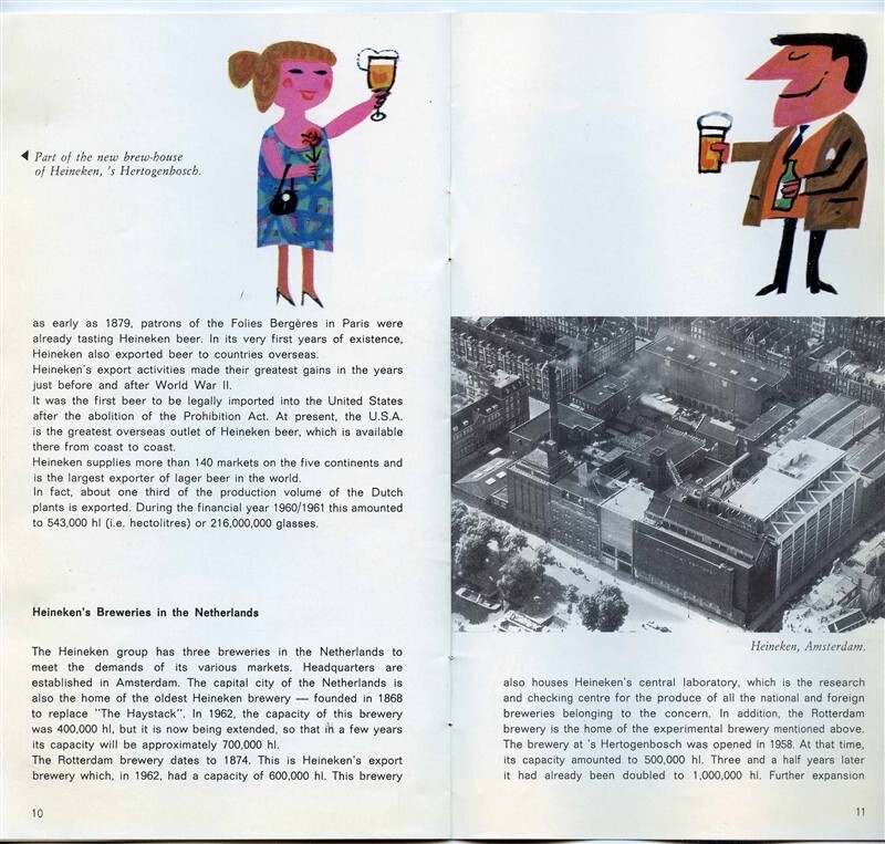 Heineken Beer Booklet Round Postcard Folder and Coaster 1963