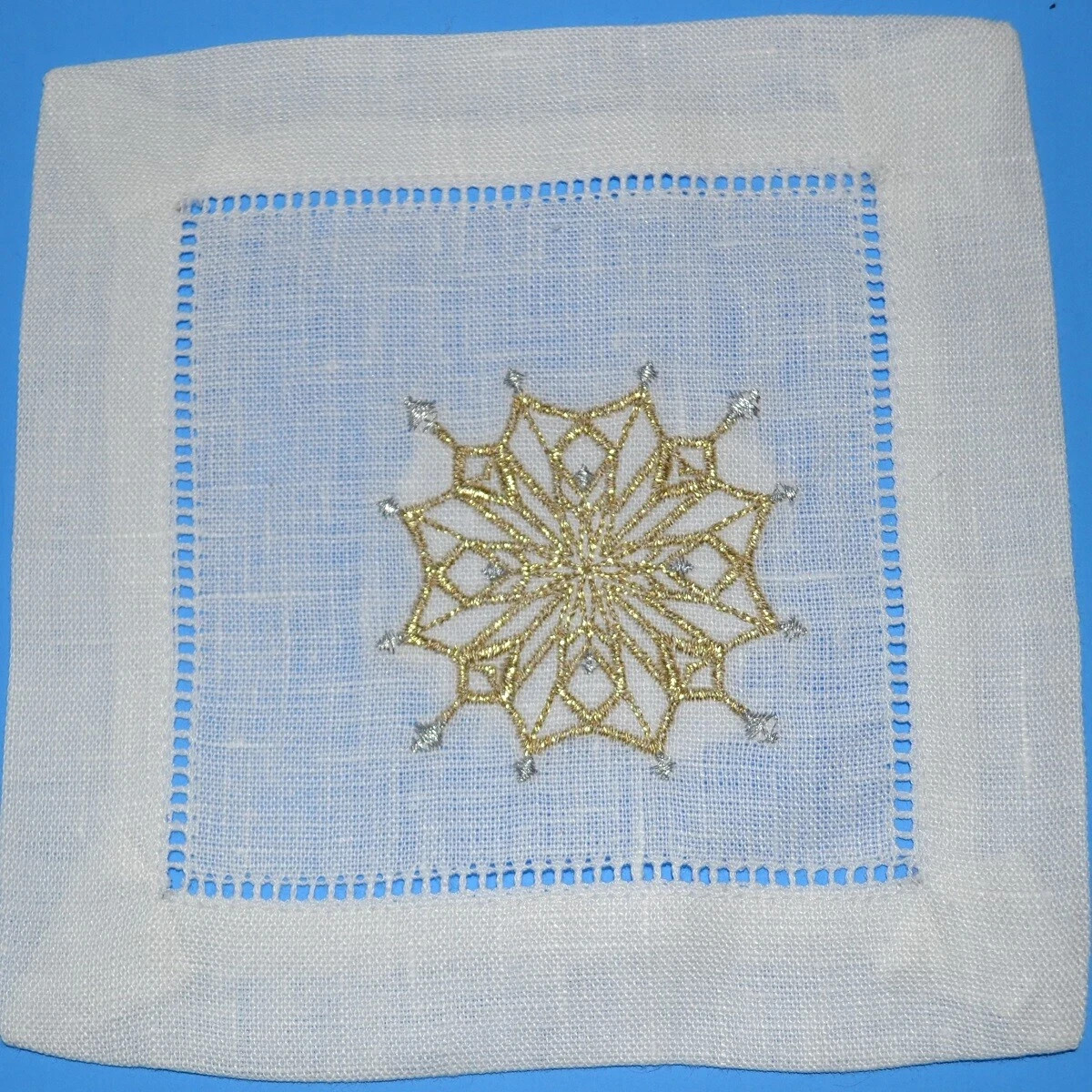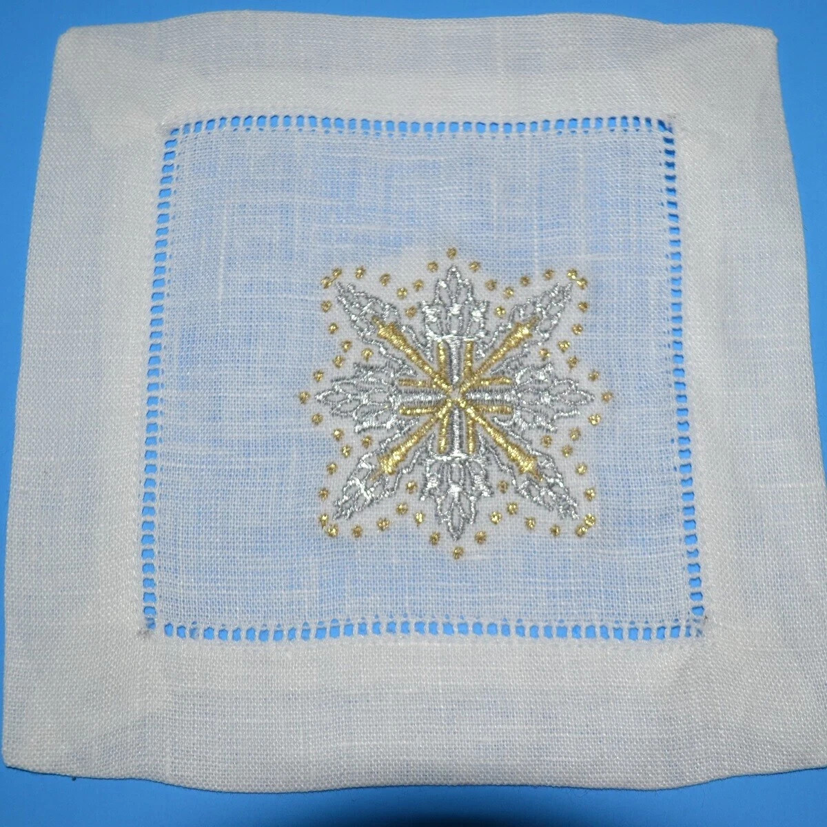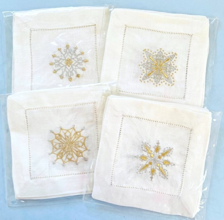 Sferra Snowflake Embroidered Linen Cocktail Napkins Gold/Silver 6x6 SET/4 Choose