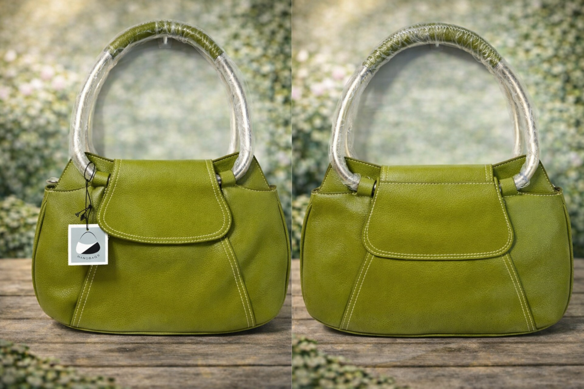 Green Structured Shoulder Bag White Stitching Leather Large Hobo Tote NWT Chic Modern Handbag